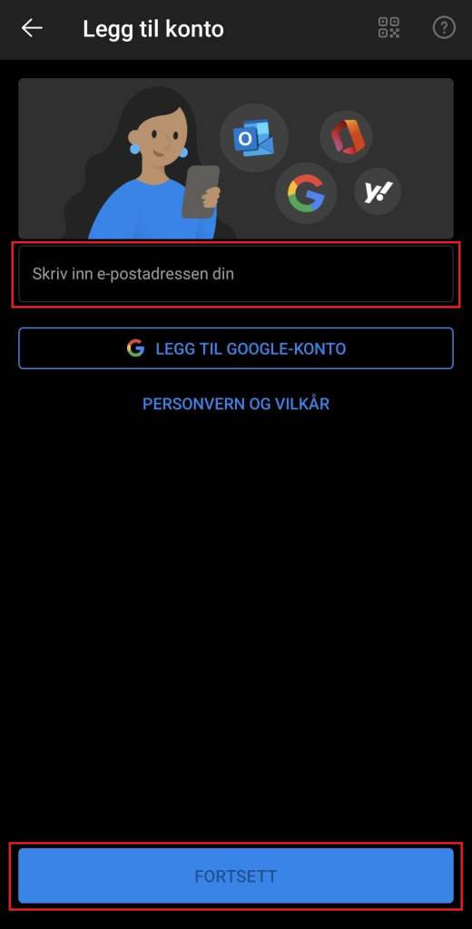 4. Skriv inn mailadressen du vil legge til og trykk på Fortsett.